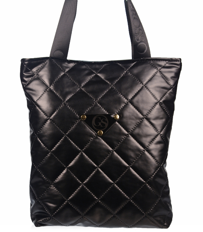 Puha fekete kézitáska átlós varrással